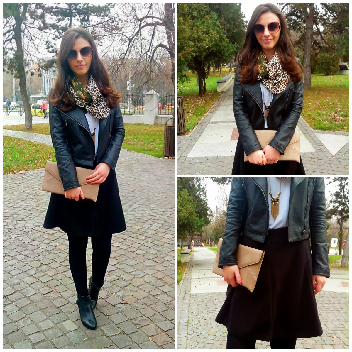 So cute! Love the leather jacket and the skater skirt. They are both such versatile pieces. The leopard print scarf is so fun and really stands out. Definitely an amazing statement piece! : )